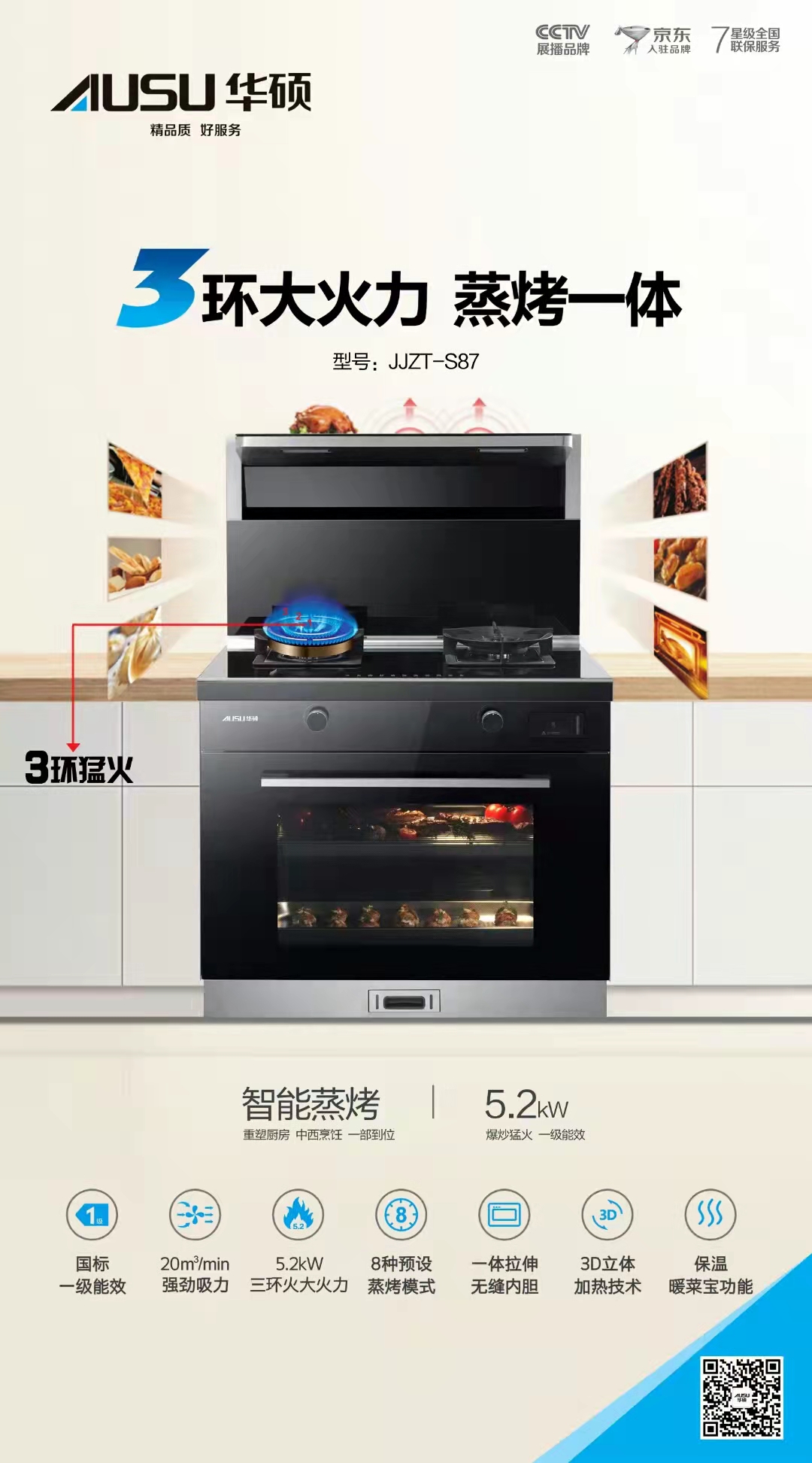 2.煙灶、蒸烤一體式開關(guān),操作簡(jiǎn)便,無需俯身操作。