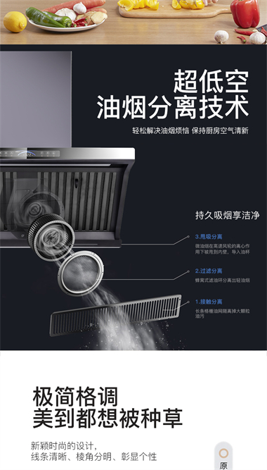 5.超低空油煙分離技術(shù),保持廚房空氣清新