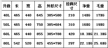 1、額定容量:( 40、50、60、80)L