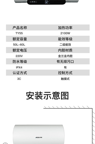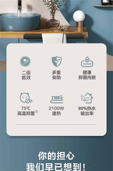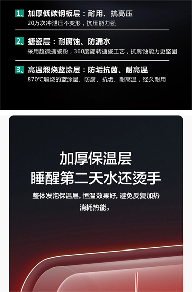 1、整體聚酯發(fā)泡,減少熱損失,節(jié)能環(huán)保; 2、優(yōu)質(zhì)合金蘭圭內(nèi)膽,環(huán)保節(jié)能,抗腐耐用壽命長; 3、大功率下潛式加熱技術(shù),速熱又增容(減少冷水死角 4、超大數(shù)字顯示機械式旋鈕設(shè)計,操控簡便、一目了然 5、金屬外殼,亞光白噴涂處理,國際流行外觀設(shè)計,外觀新穎; 6、采用三極斷開漏電保護系統(tǒng),特設(shè)超壓保護、防干燒保護、超溫保護等多重安全保護